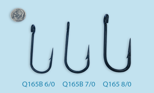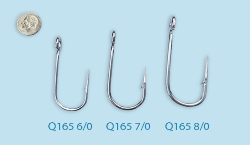 Q165 Barker Hook, is a Q510 with a shorter distance between the needle and the shank. This hook is a popular winter king salmon hook in sitka.